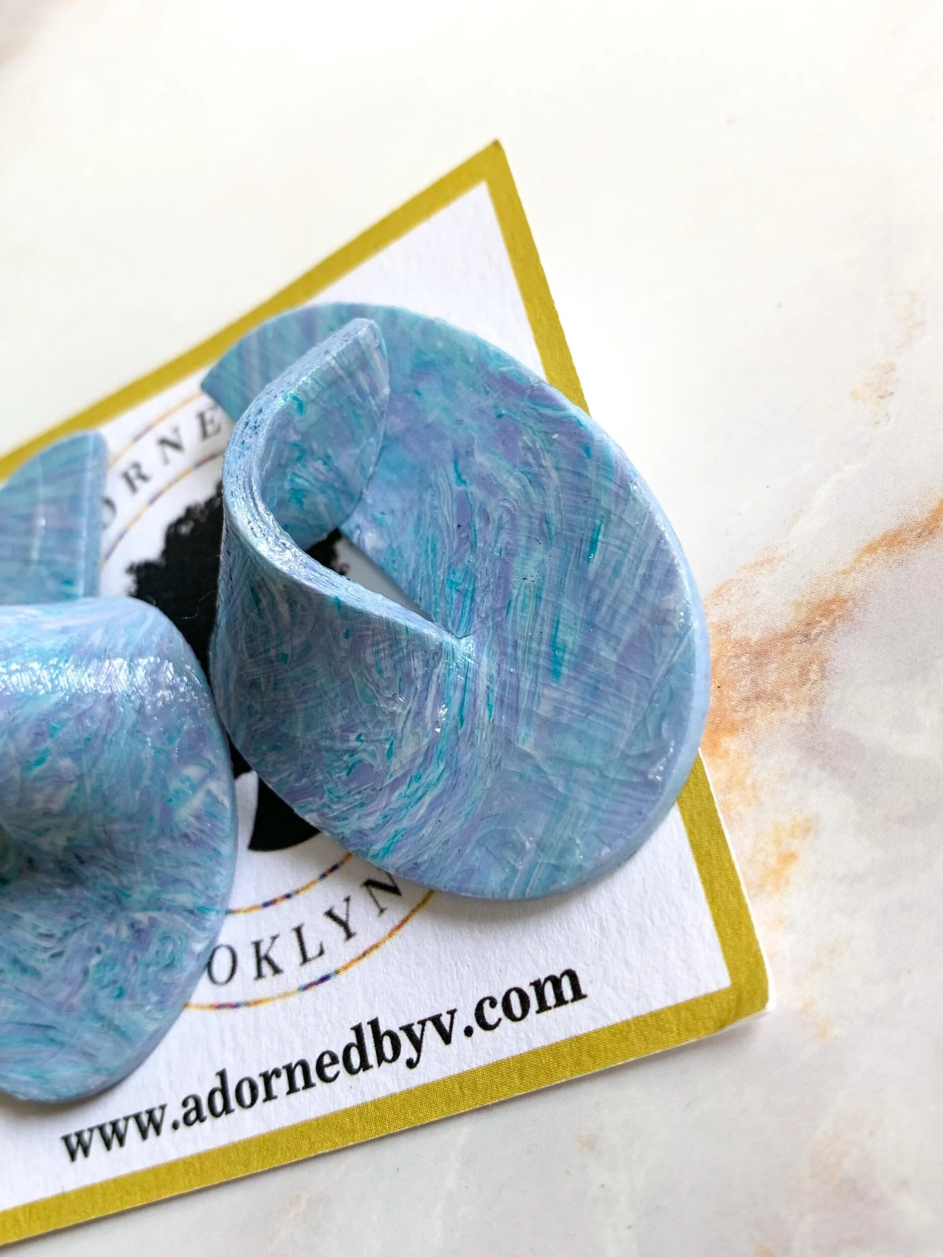 These beautiful earrings are one of a kind and made by hand. Each pair are created with their own unique pattern to ensure that you are have the only one of its kind. They are just over 2 inches long, are light on the ears and add the perfect pop of color to any outfit.